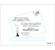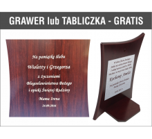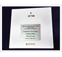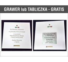 Do zamówionej pamiątki możemy wykonać spersonalizowany grawer lub nadruk okolicznościowej dedykacji oraz logotypu czy ozdobnych grafik wg indywidualnych ustaleń i projektu.