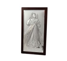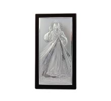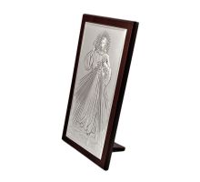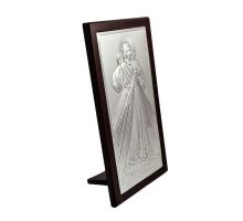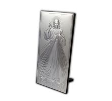 Upominek z okazji jubileuszu kapłaństwa w postaci srebrnego obrazka z Panem Jezusem z grawerem.