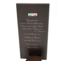 Grawer dedykacji wykonany jest bezpośrednio na drewnie lub też na dołączonej tabliczce.
