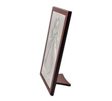 Srebrny obrazek to "Jezus Frasobliwy 6522WM" na drewnianym brązowym drewnie".