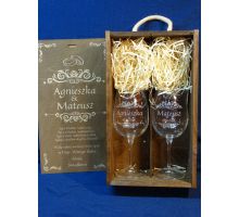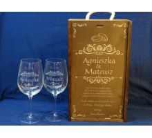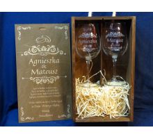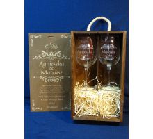 Na pudełku wykonany jest grawer okolicznościowej, ślubnej dedykacji.