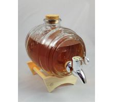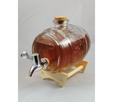 Beczka umieszczona jest na na drewnianej podstawie, a dzięki kranikowi zapewnia wygodne nalewanie zawartości do szklanek.