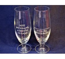 Oferujemy kieliszki do szampana, wina, wódki oraz kufle i szklanki do piwa czy szklaneczki do whisky z indywidualnym, spersonalizowanym grawerem.