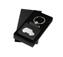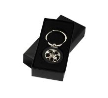 Breloczek zapakowany w czarne, tekturowe pudełko.
