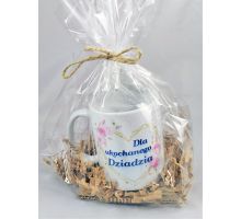 Nadruk dedykacji na kubku jest dowolny i można wykonać wg wzoru lub wg indywidualnych ustaleń.