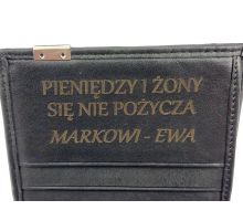 Na breloczku istnieje możliwość dwustronnego graweru na skórzanym pasku lub metalowej obejmie.