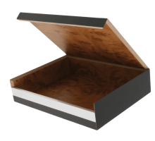 Brelok zapakowany w czarne, tekturowe pudełko.