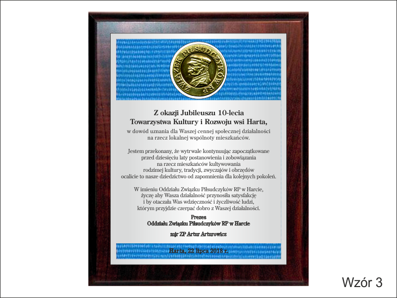 Prezentowany dyplom dedykowany jest jako wyrazy uznania z okazji jubileuszu stowarzyszenia, ale można wykonać go też na inną okoliczność.