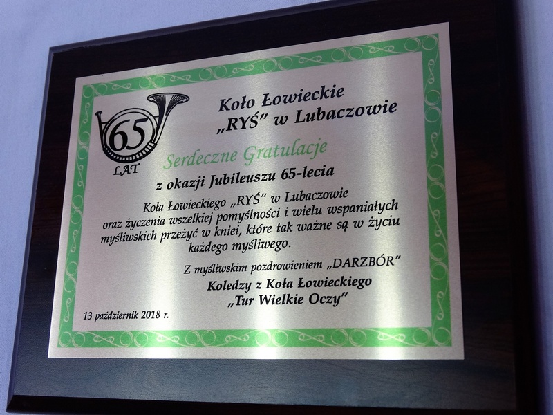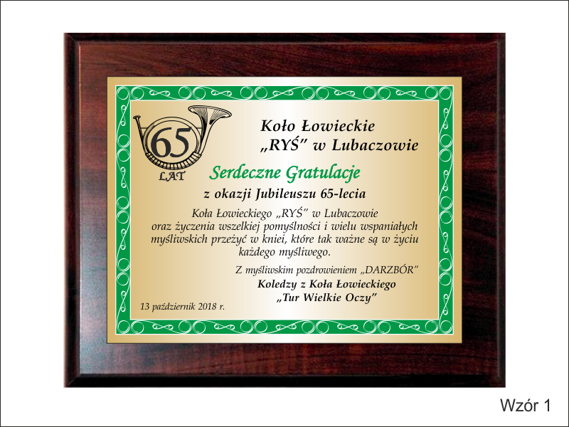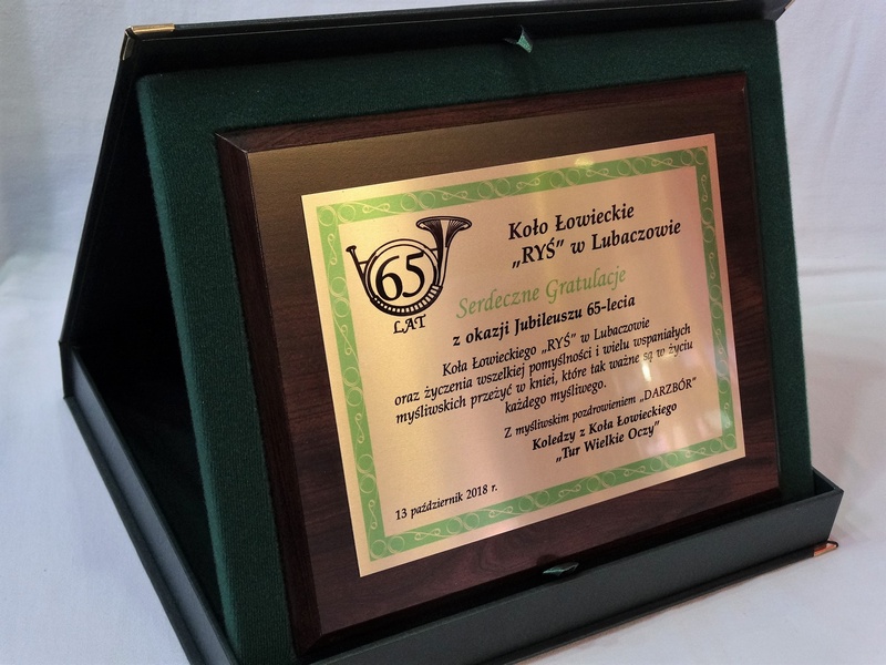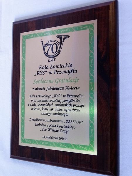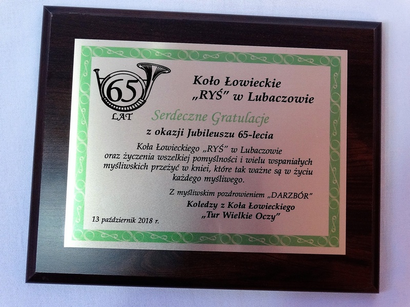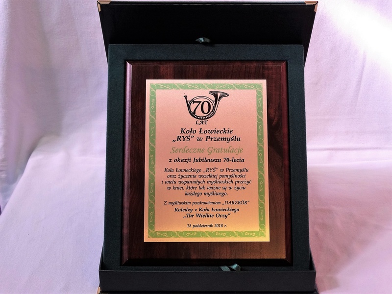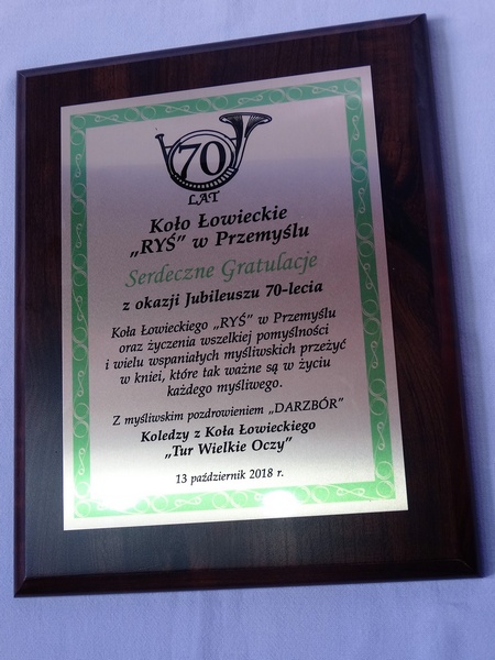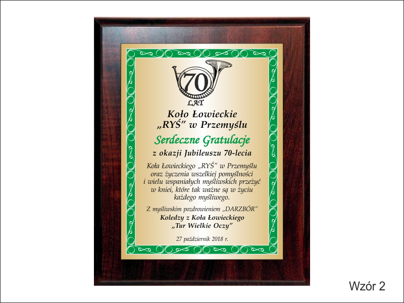 Prezentowany dyplom dedykowany jest jako pamiątka z okazji Jubileuszu Koła Łowieckiego, ale można wykonać go też na inną okoliczność.