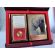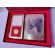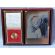 - z grawerowanego zdjęcia i cytatu, na złotym laminacie umieszczonym obok medalu na podkładzie,