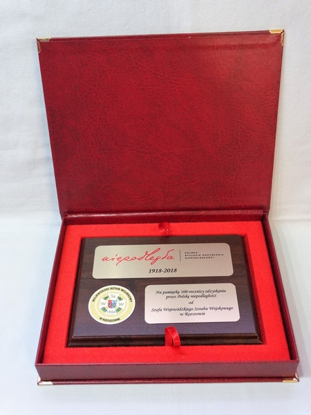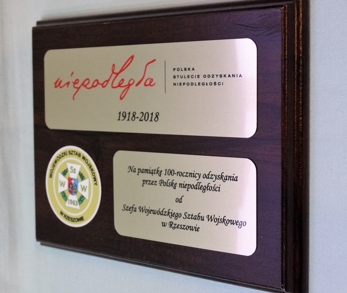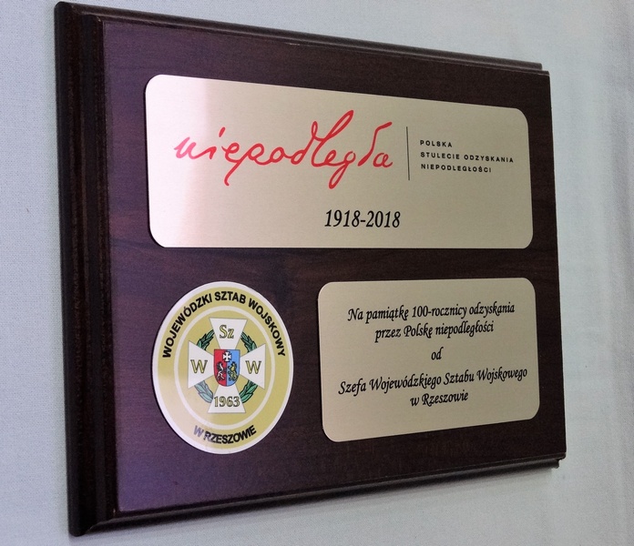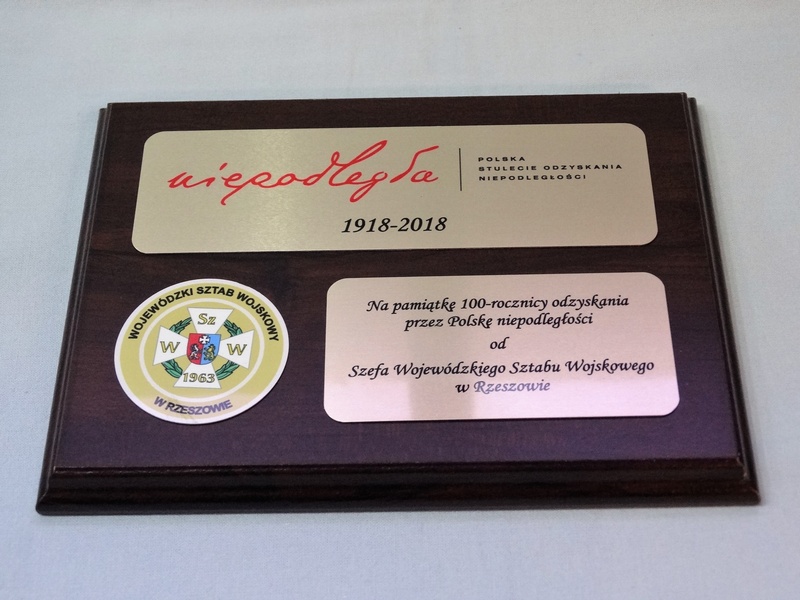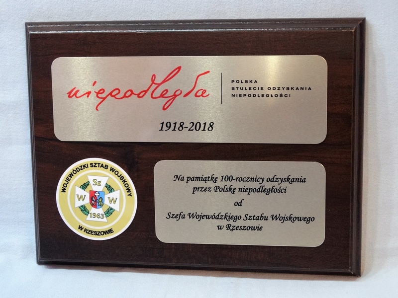 Dyplom drewniany w postaci pamiątkowego okolicznościowego Ryngrafu.