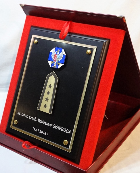 - z bezbarwnej przezroczystej lub dymionej pleksi z grawerem dedykacji