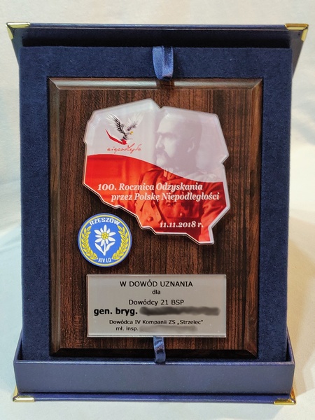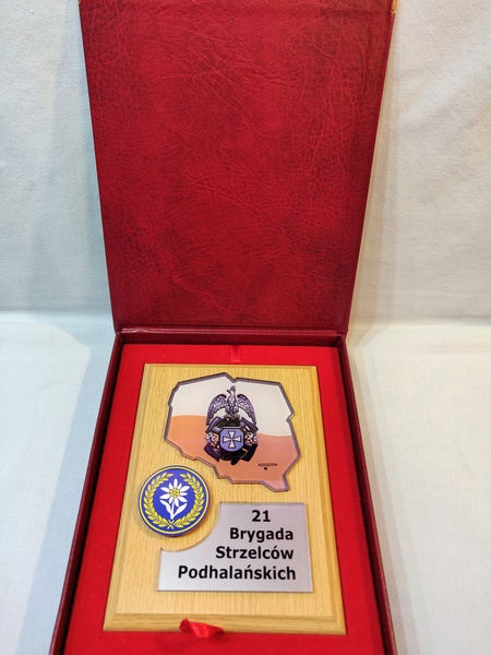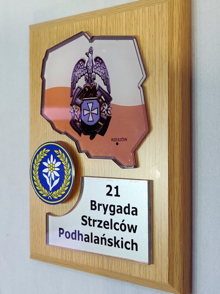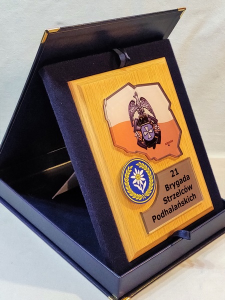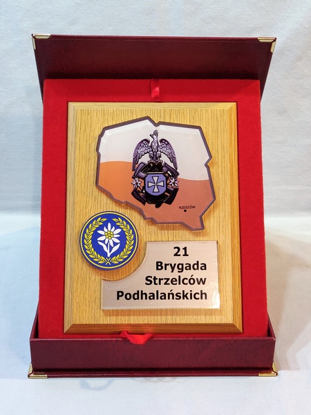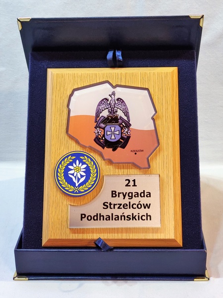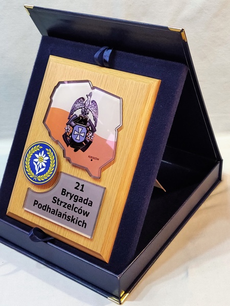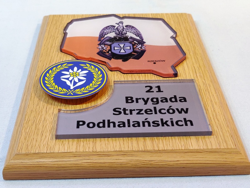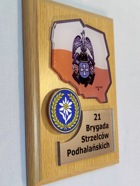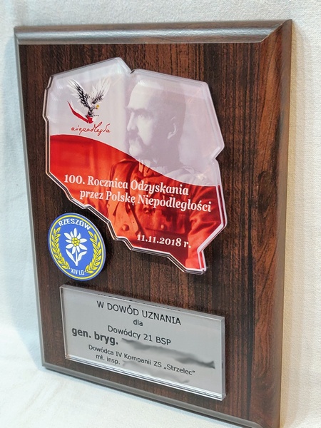 Mapa / odznaka / herb i dedykacja z pleksi mogą mieć dowolny kształt.