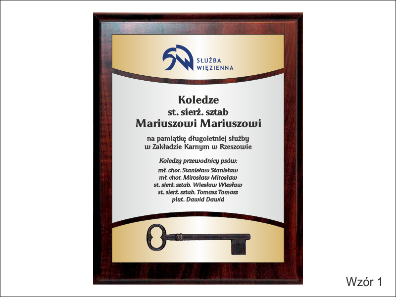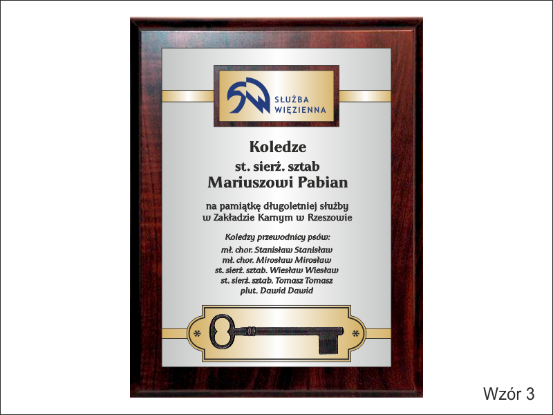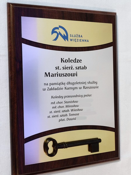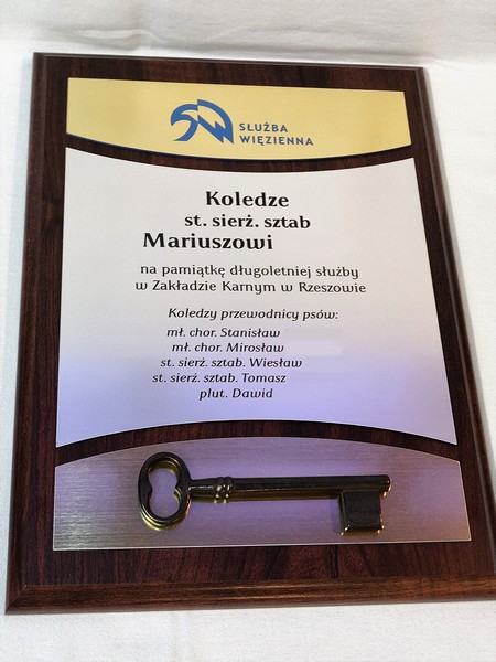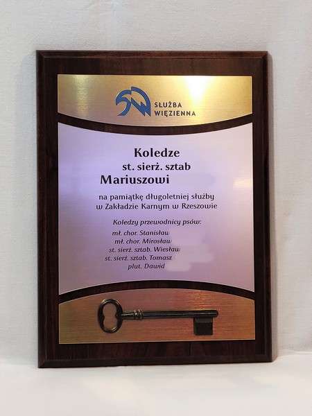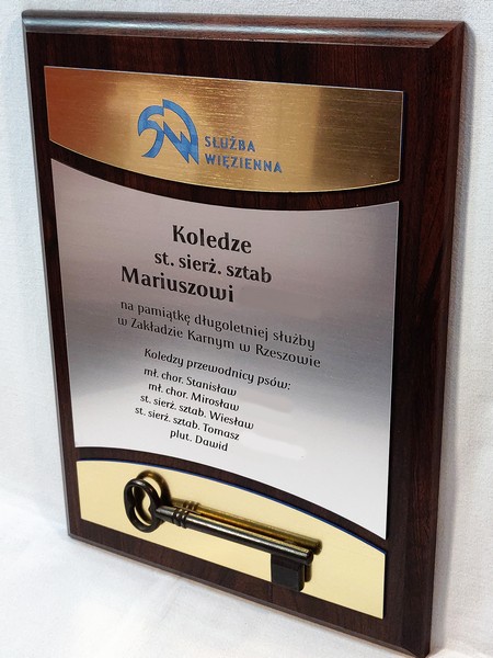 - z laminatów grawerskich (srebrnego, złotego) z grawerowaną dedykacją,