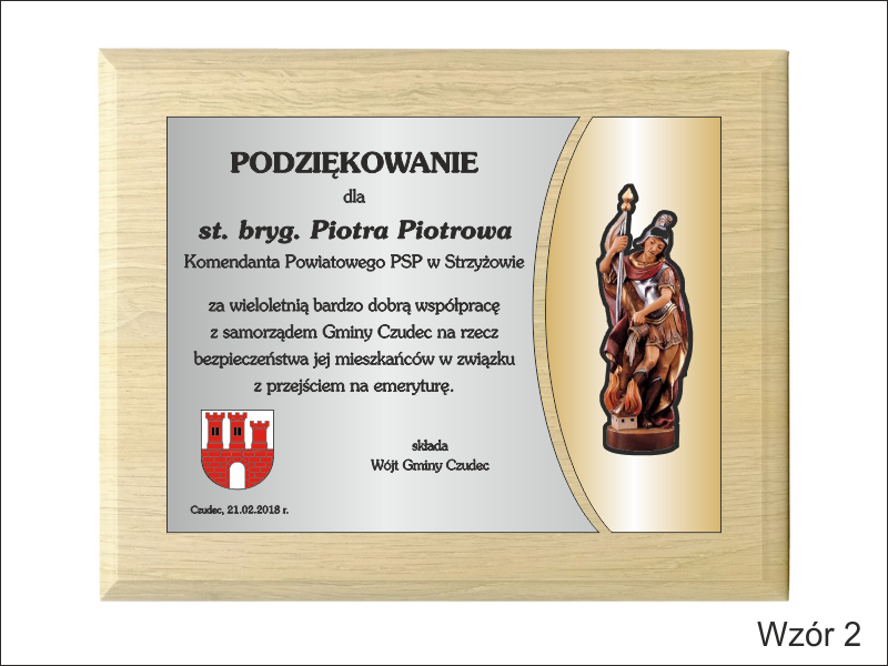 - z dodatkowych wyciętych w odpowiednim kształcie laminatów z nadrukiem św. Floriana i herbu.