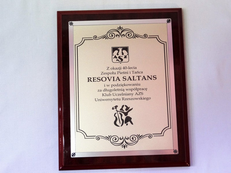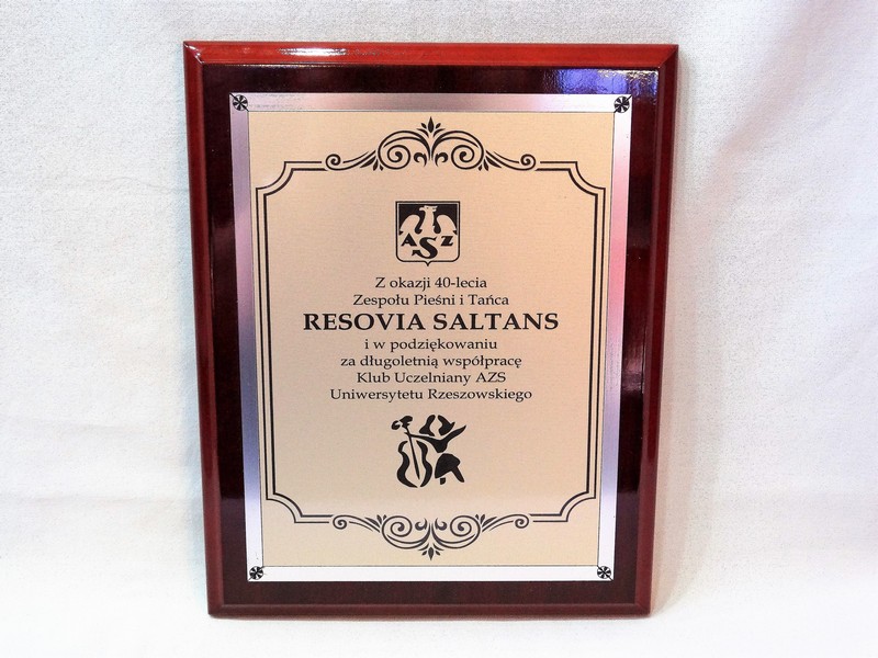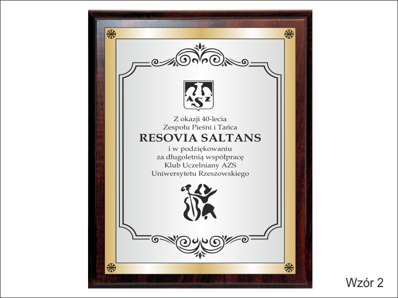 - z blaszki złotej z nadrukiem dedykacji oraz