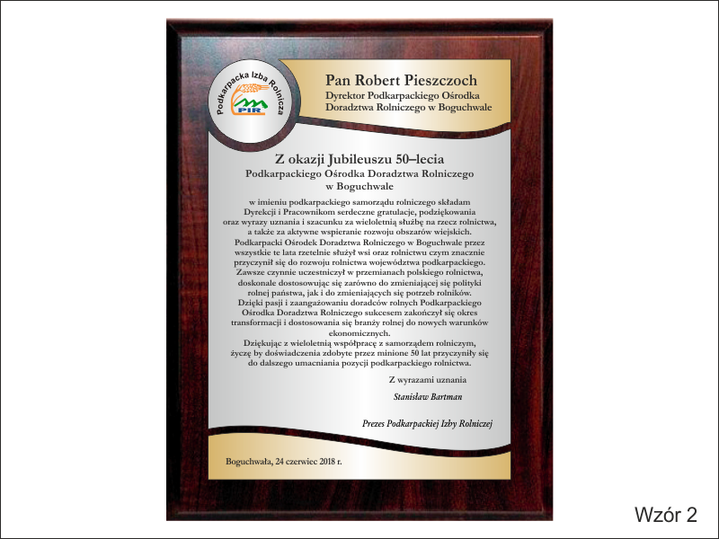 Istnieje możliwość wykonania dedykacji wg indywidualnych ustaleń i projektu uzgodnionego z klientem lub wg jednego z wzorów.