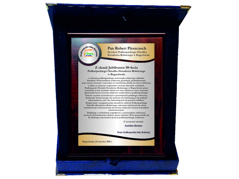 Prezentowany dyplom dedykowany jest jako pamiątka z okazji jubileusz działalności instytucji, ale można wykonać go także na inną okoliczność.