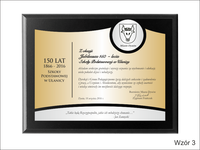 Prezentowany dyplom dedykowany jest jako jubileusz powstania szkoły, ale można wykonać go też na inną okoliczność.