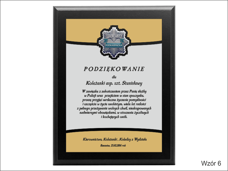 Prezentowany dyplom dedykowany jest jako pamiątka na zakończenie służby czy pożegnanie z pracy, ale można wykonać go też na inną okoliczność.
