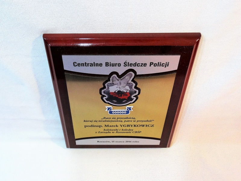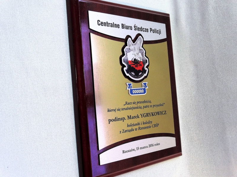 - z wykonanej z laminatów i pleksy odznaki (herbu, loga)
