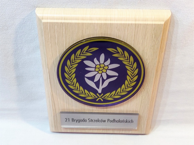 - z umieszczonej pod odznaką bezbarwnej pleksi z nadrukiem dedykacji,