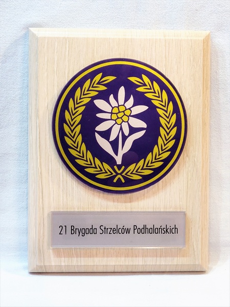 Odznaka / herb i dedykacja z pleksi mogą mieć dowolny kształt.