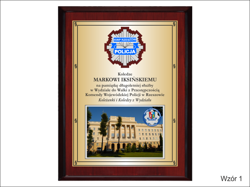 Prezentowany dyplom dedykowany jest jako pamiątka na zakończenie służby (pracy), ale można wykonać go też na inną okoliczność.