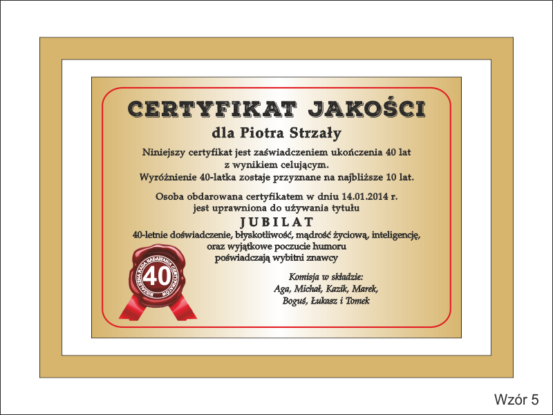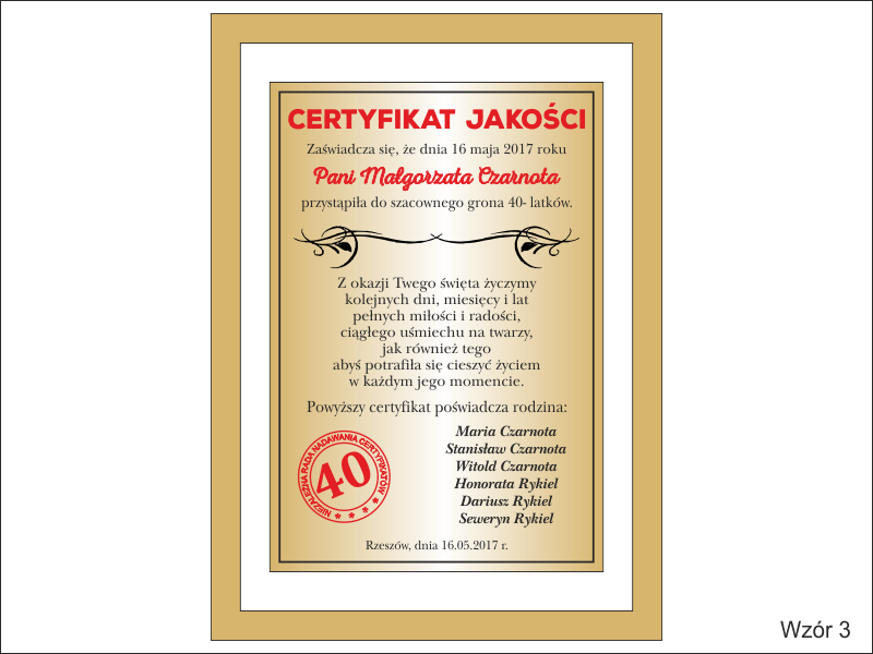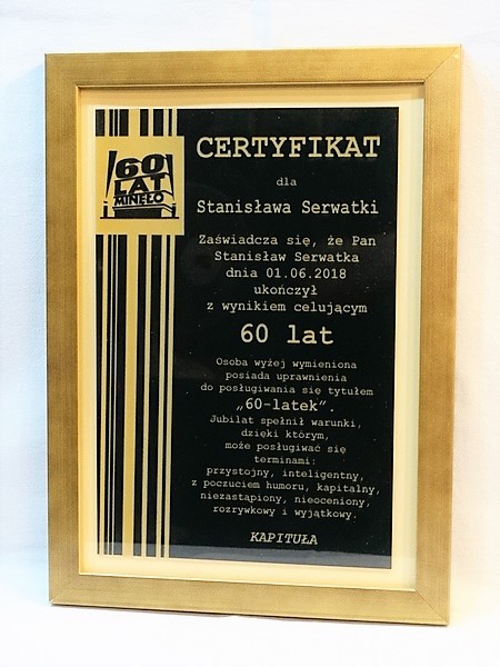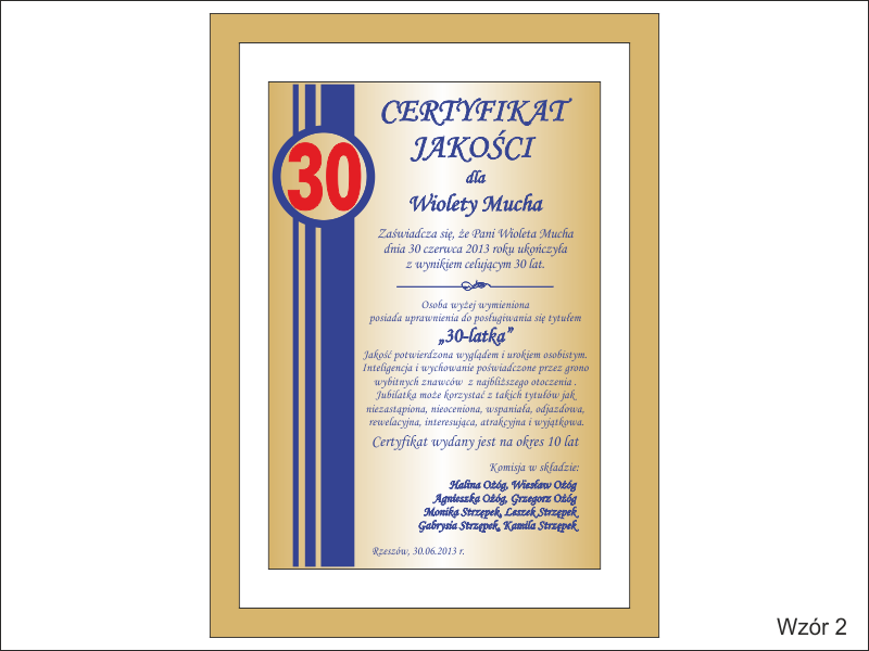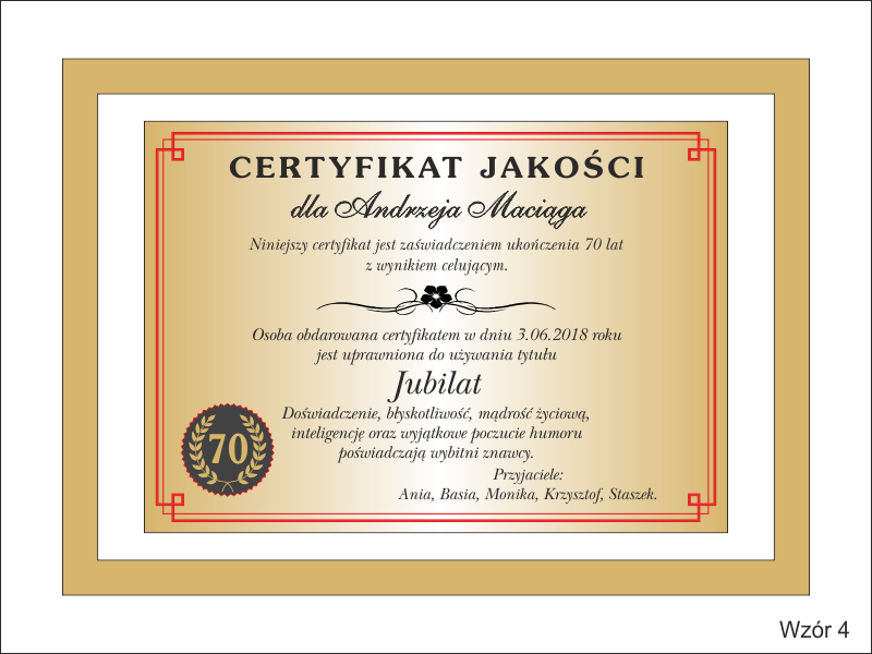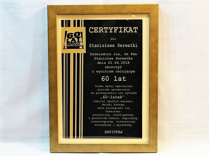Prezentowany dyplom dedykowany jest jako certyfikat urodzinowy, ale można wykonać go też na inną okoliczność.