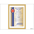 Dyplom okolicznościowy w szklanej ramie z drewnianym złoconym rantem z laminatem z grawerem lub blaszką z nadrukiem.