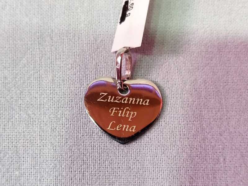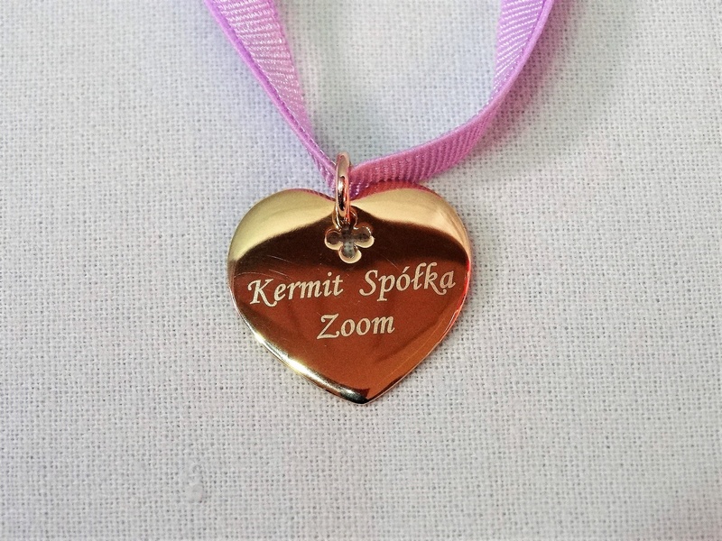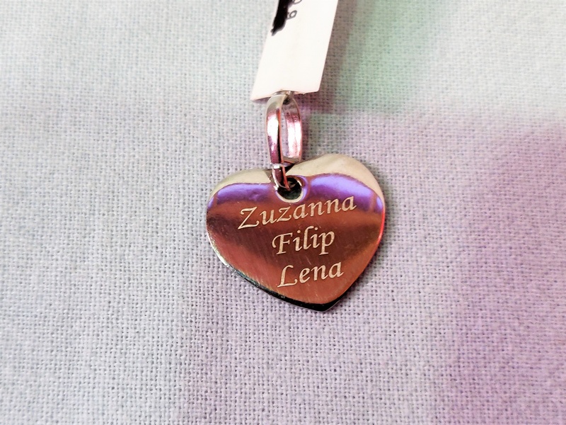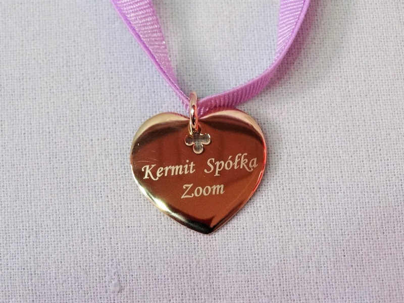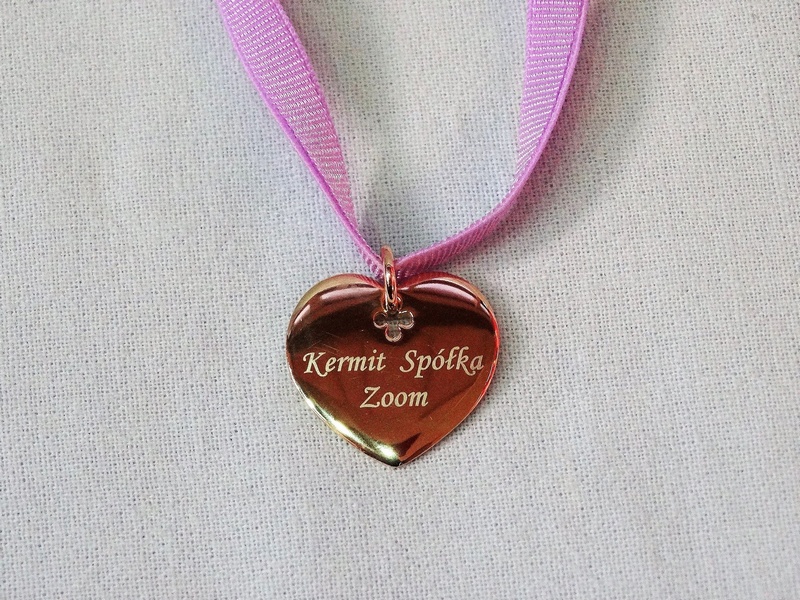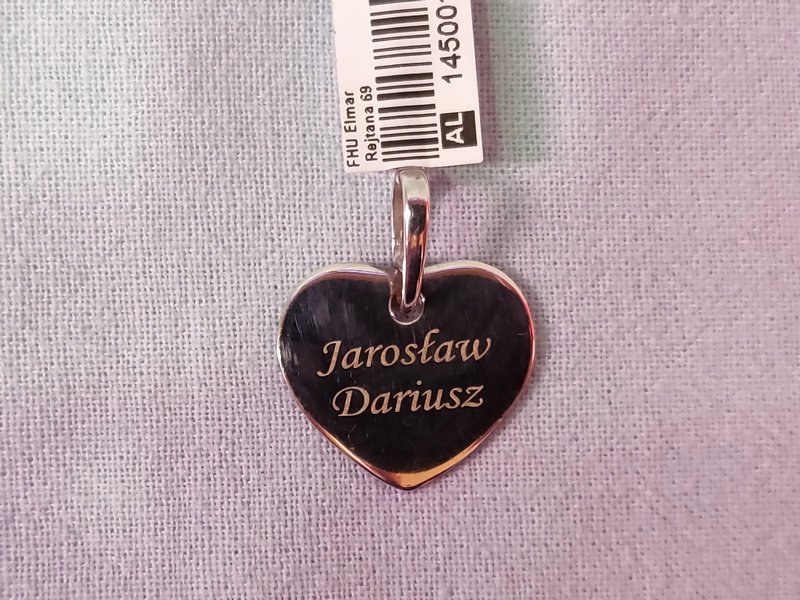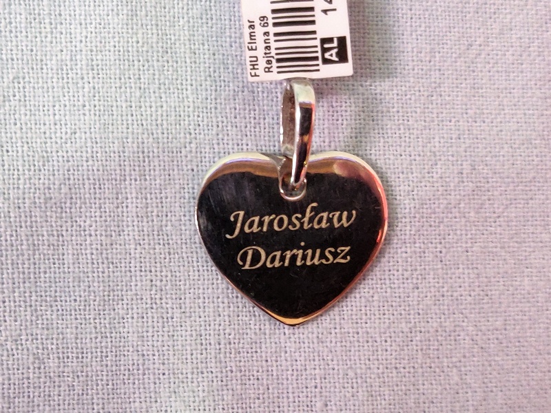 Usługa grawerowania medalika - przywieszki w kształcie serca.