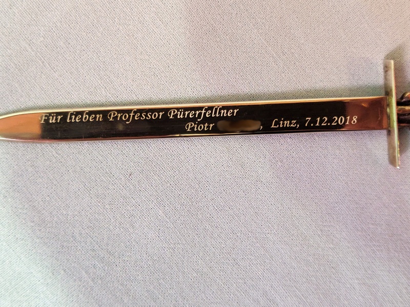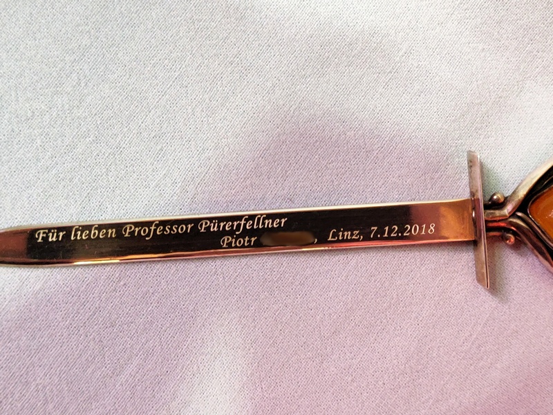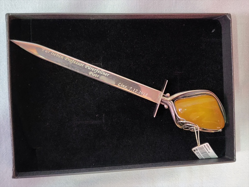 Usługa grawerowania ozdobnego srebrnego noża do kopert.