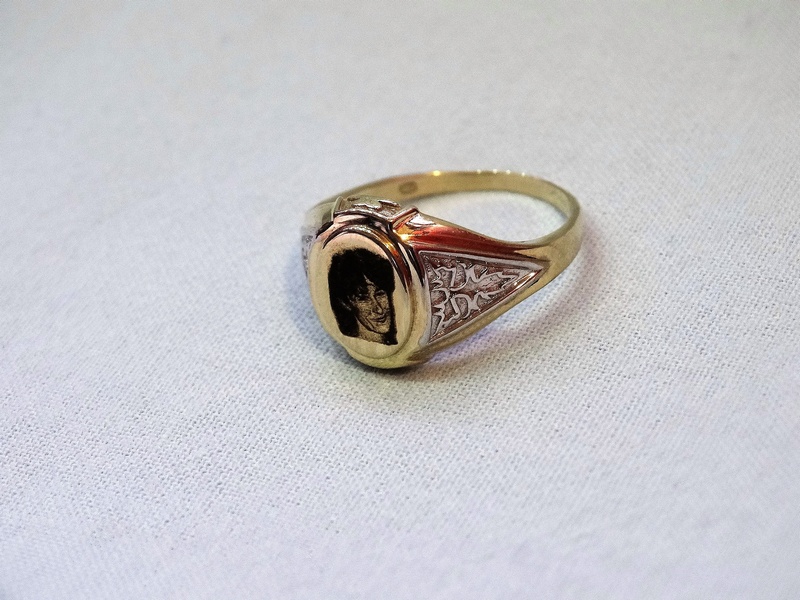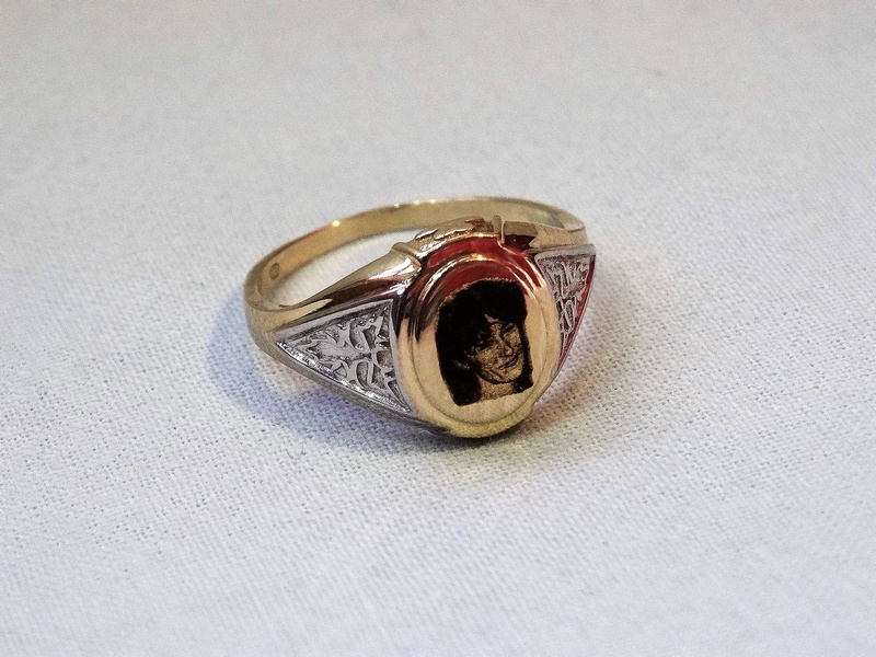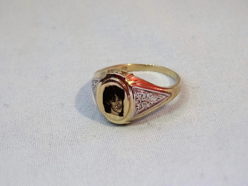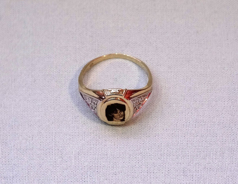 Usługa grawerowania zdjęcia na srebrnym sygnecie.
