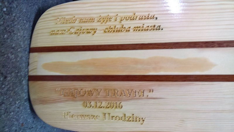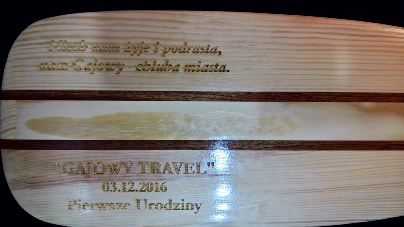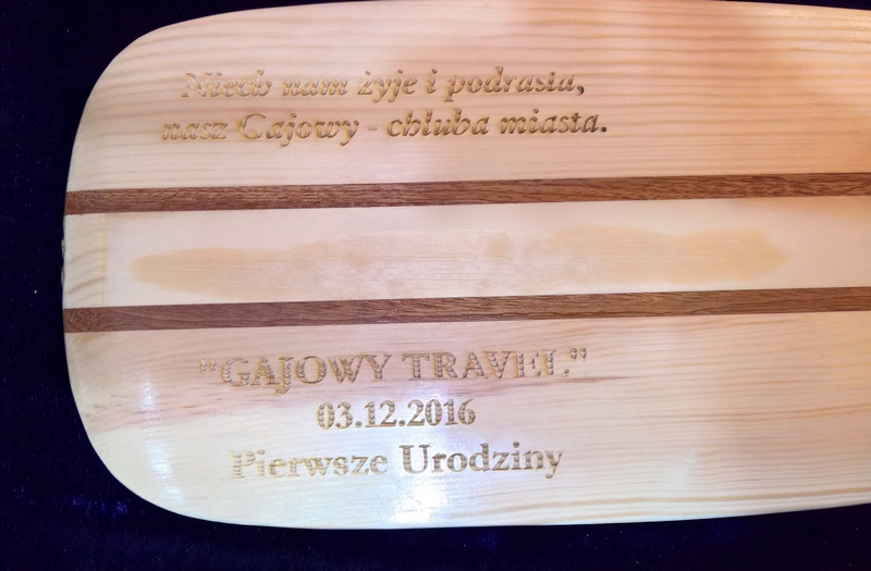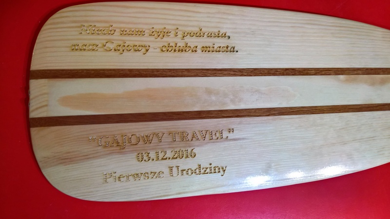 Usługa grawerowania drewnianego pamiątkowego wiosła.