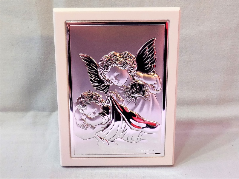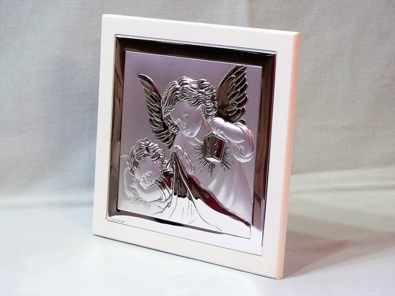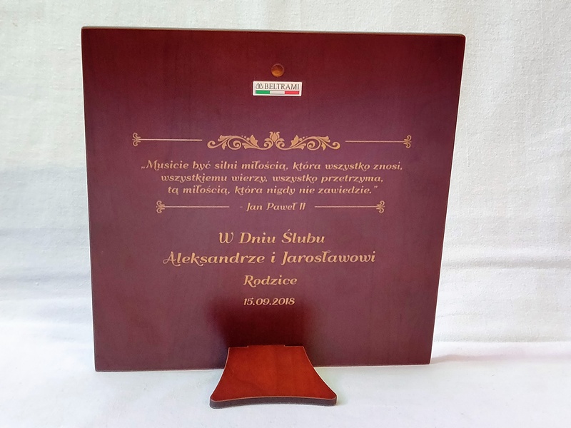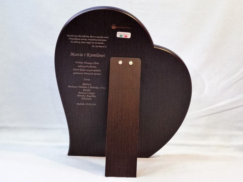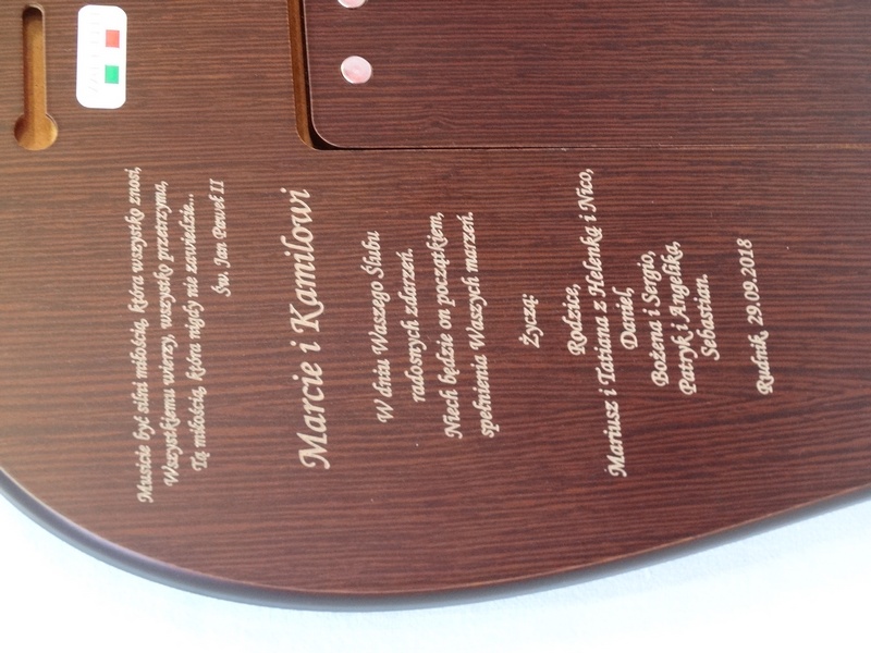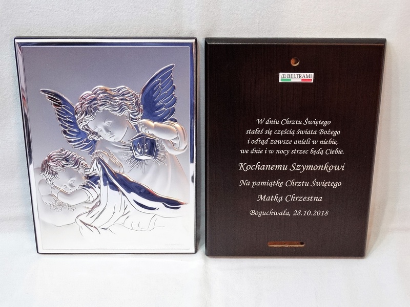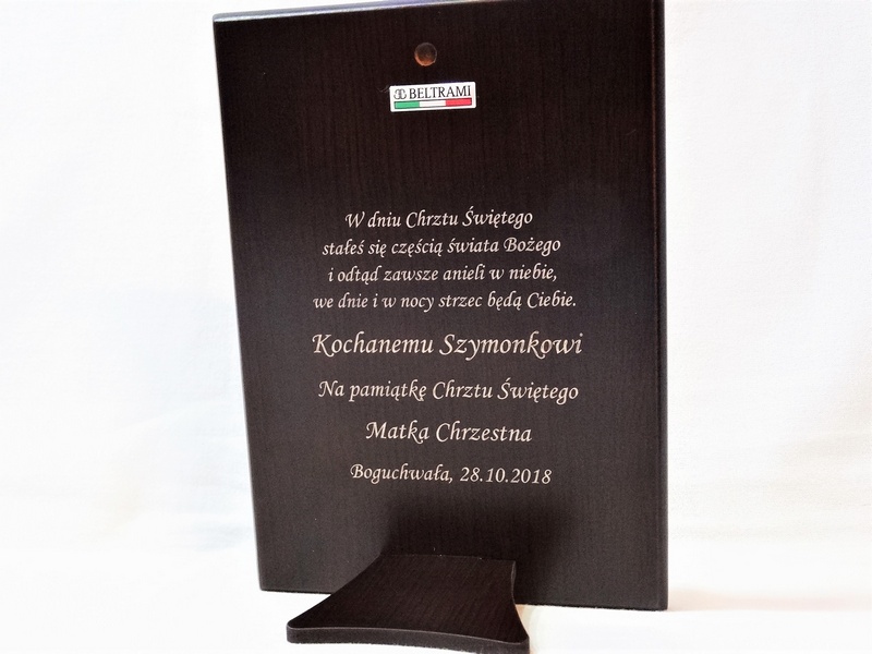 Grawer wykonany jest laserowo na tylnym, drewnianym podkładzie srebrnego obrazka.