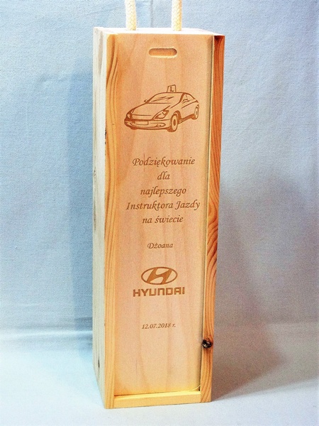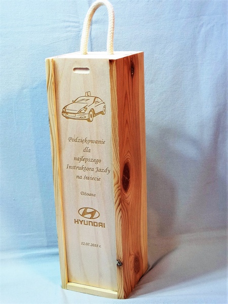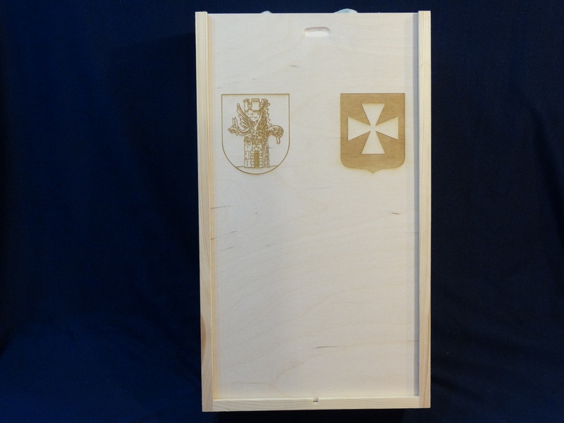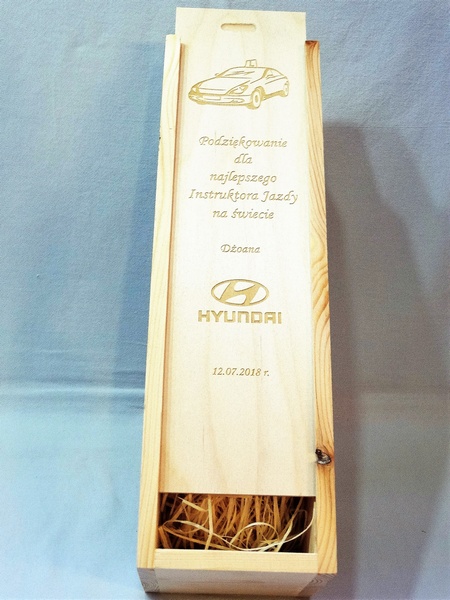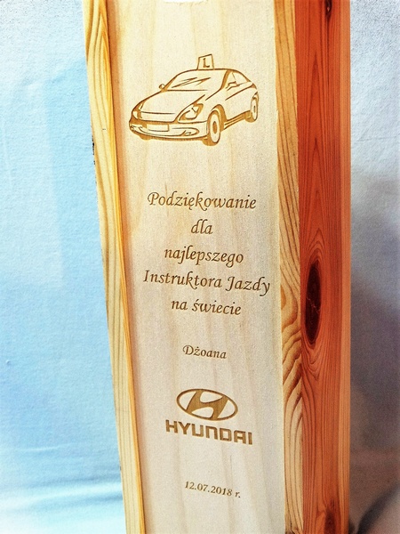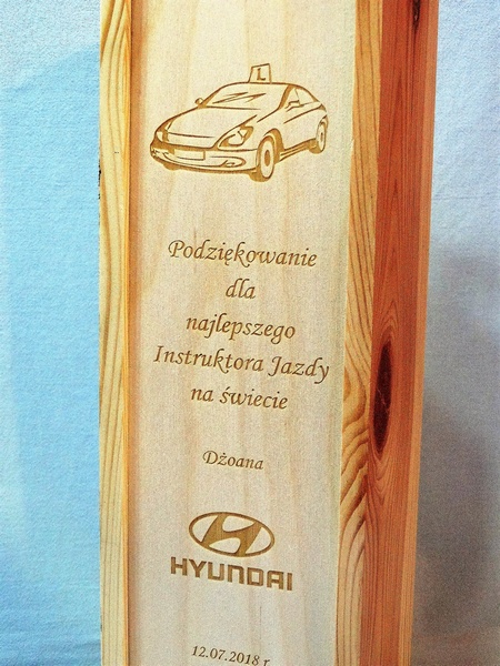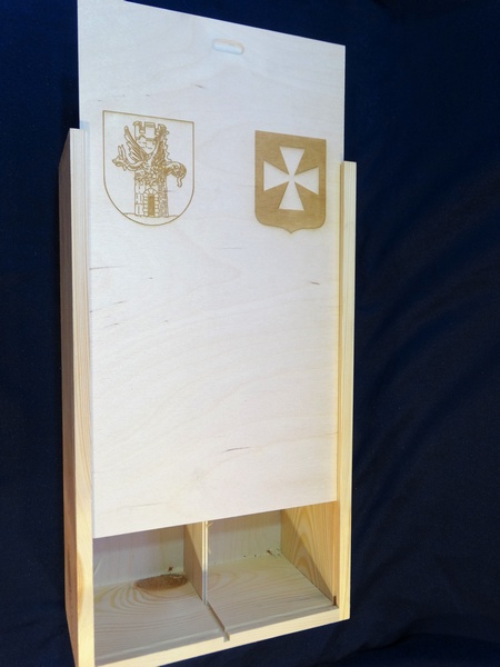 Grawer wykonany jest laserowo na wieczku skrzyneczki na wino.