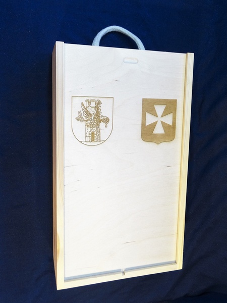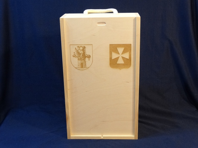 Usługa grawerowania na skrzyneczce do wina ze sklejki.