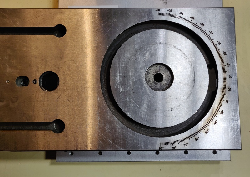 W prezentowanym przykładzie grawerowana jest miara kątowa w zakresie 180 stopni z podziałką.