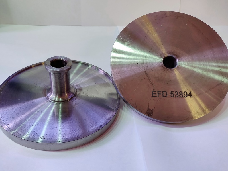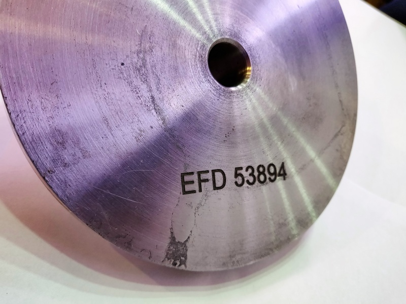 Znakowanie przez grawerowanie laserowe na stalowej dużej tulei z kołnierzem.
