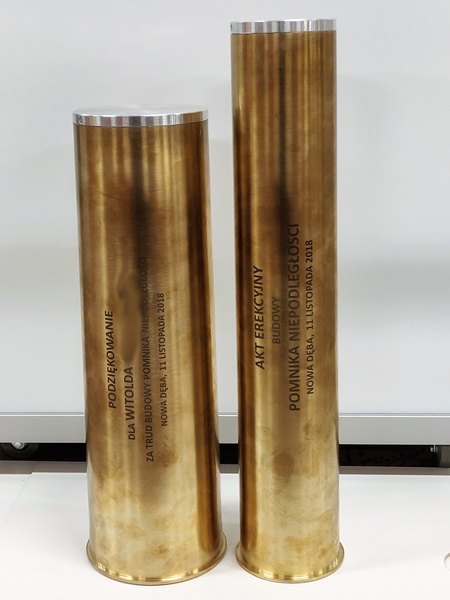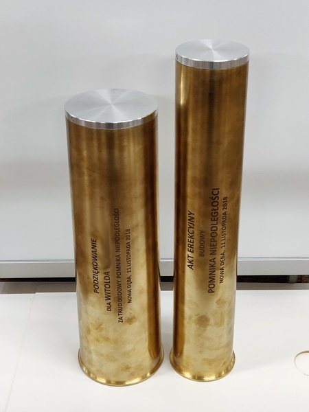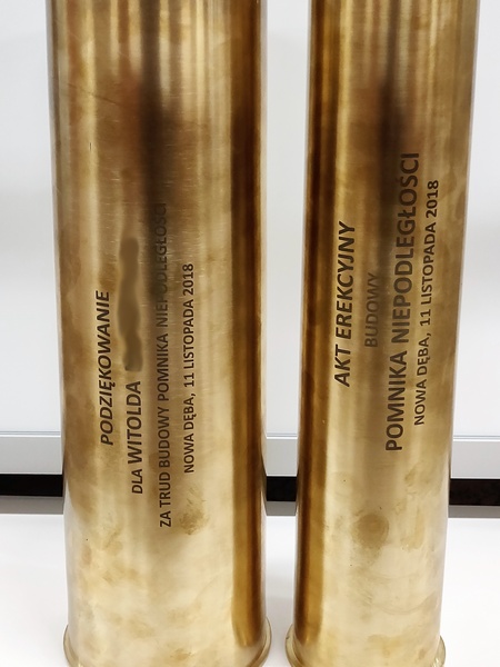 Grawer wykonany jest laserowo na obwodzie pamiątkowej łuski z artyleryjskiego pocisku.