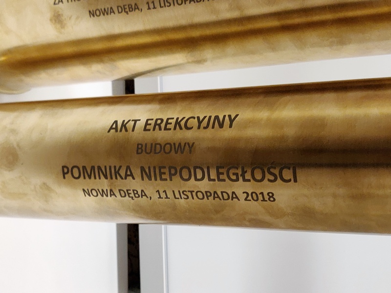 Grawerowany może być pamiątkowy napis, dedykacja, herb czy logotyp.