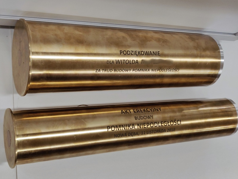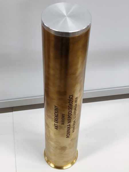 Usługa grawerowania na mosiężnej łusce pocisku artyleryjskiego.