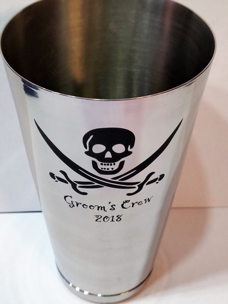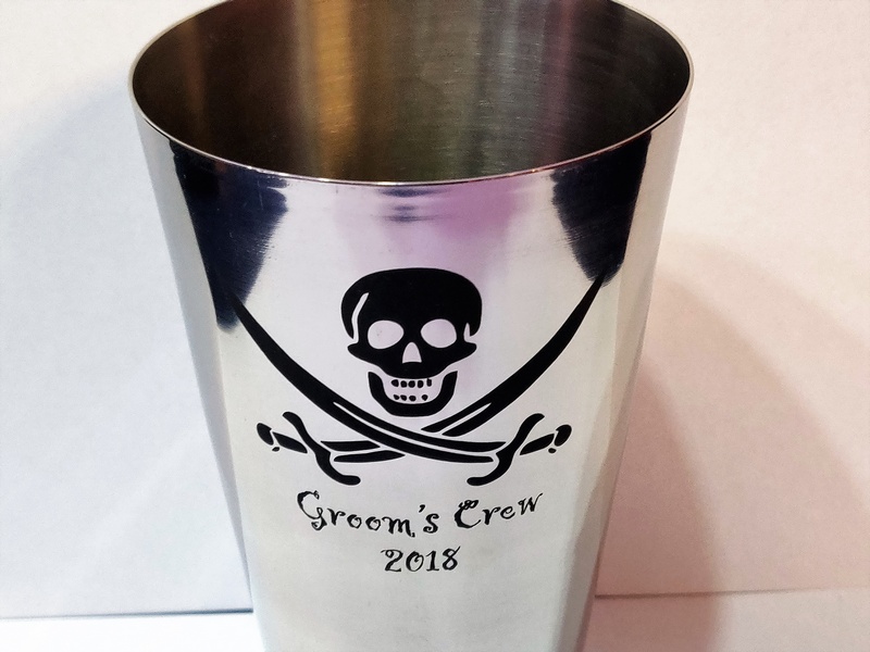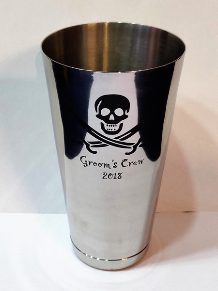 Usługa grawerowania na metalowym stalowym shakerze.