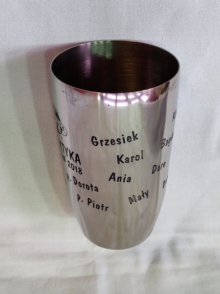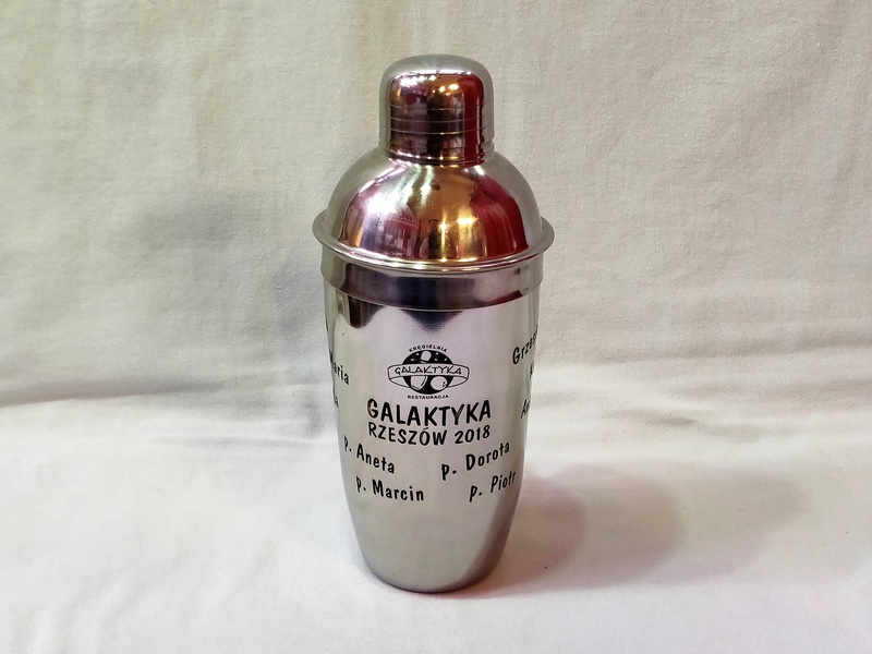 Grawer wykonany jest laserowo po okręgu na shakerze ze stali nierdzewnej.