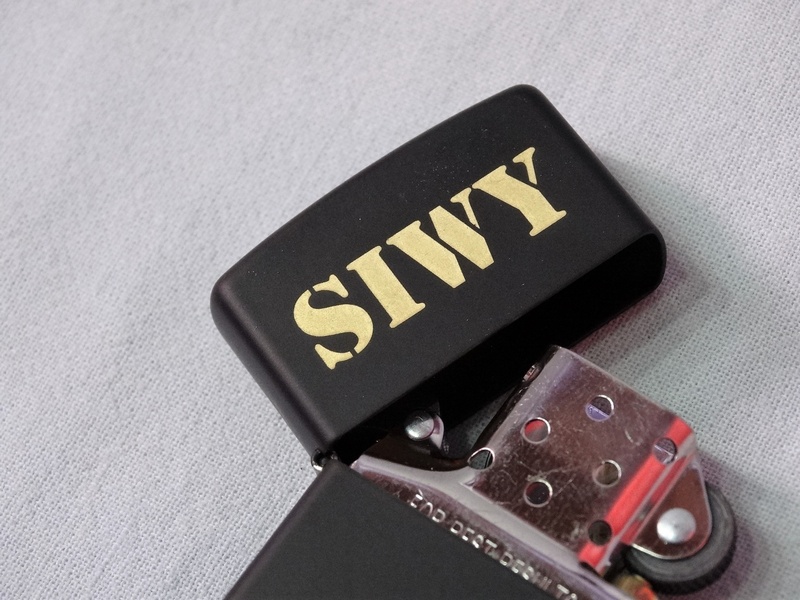 W prezentowanym przykładzie grawer wykonany jest laserowo lub mechanicznie na korpusie lub zatrzasku zapalniczki.