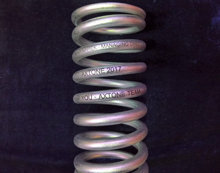 Usługa grawerowania na metalowej stalowej sprężynie.