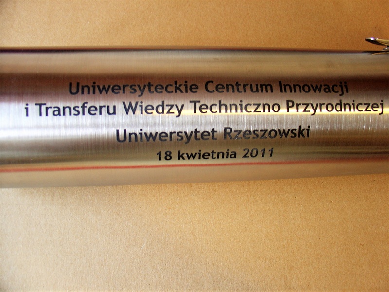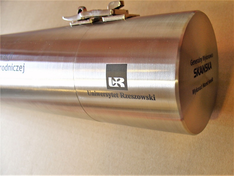 Grawer wykonany jest laserowo na obwodzie pamiątkowej tuby na akt erekcyjny pod budowlę.