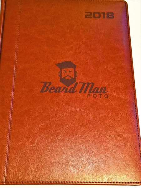 Grawer wykonany jest laserowo na skórzanej lub skóropodobnej okładce książkowego kalendarza.