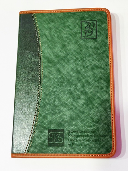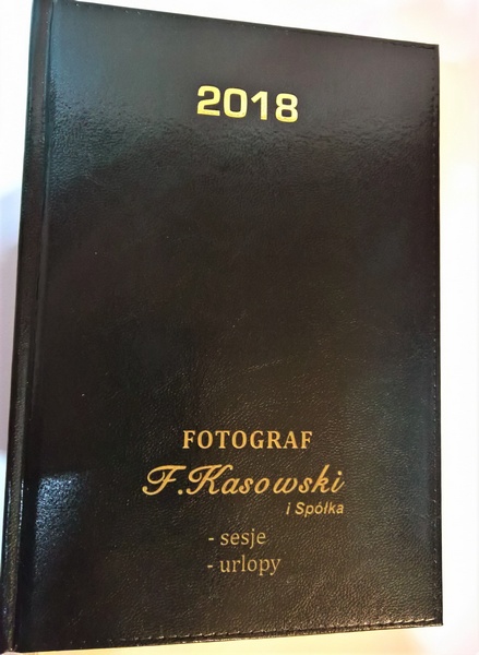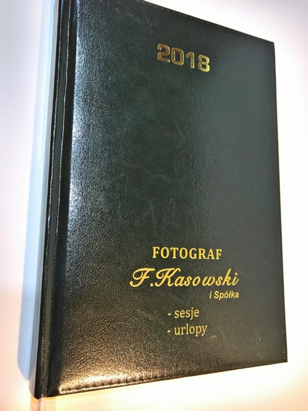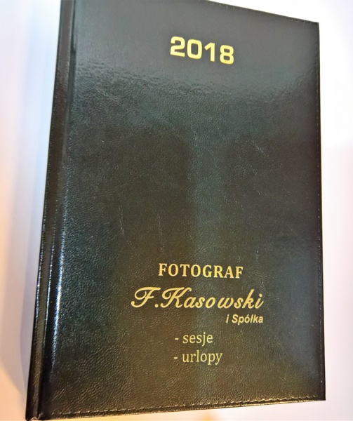 Grawer wykonany jest laserowo na skórzanej okładce książkowego terminarza.