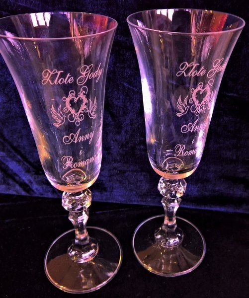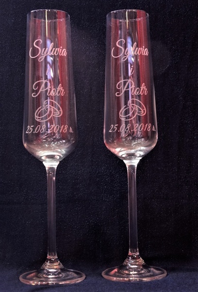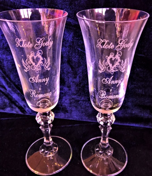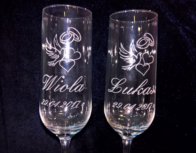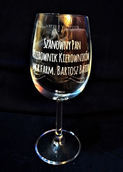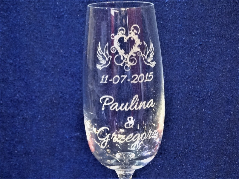 Grawer wykonany jest laserowo bezpośrednio na czarce kieliszka po okręgu.
